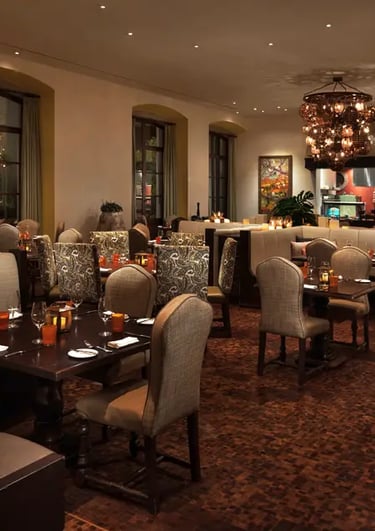 Restaurante ubicado en una casa histórica completamente remodelada; cuenta con cuatro ambientes: cafetería, patio interior, salón interior y salón con chimenea en la planta alta.